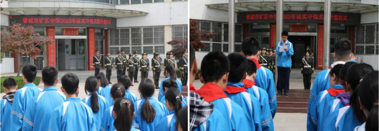 矿区中学举行了“诚实守信”主题升旗仪式,学生代表作题为“传承美德 诚实守信”的国旗下讲话,倡议学生诚信学习、诚信处事、诚信待人、诚信立身、诚信处世,像珍爱生命一样珍爱自己的诚信荣誉,把诚实守信带到自己的学习中去,用自己的实际行动打造“诚实守信”的校园。最后,学生们宣誓承诺:以讲诚信为荣,不讲诚信为耻。诚实守信,从我做起,从现在做起,从点滴做起!